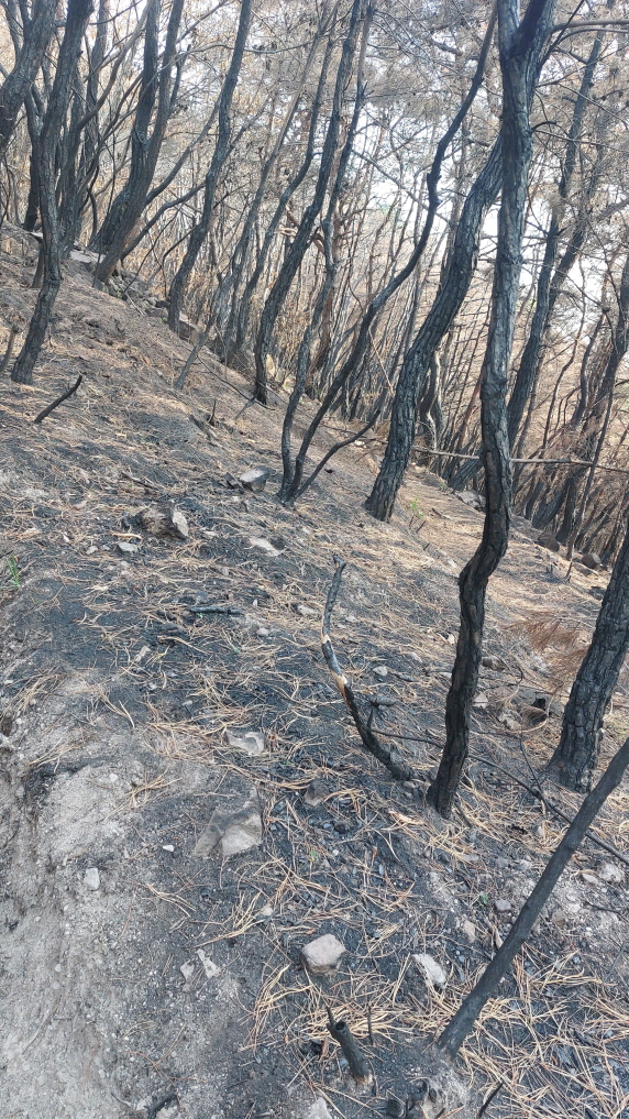 - 🔥 산불 흔적 구간 있음 (조심히 다니세요!, 아직도 그을음 냄새가 옅게 배어 있었습니다. )