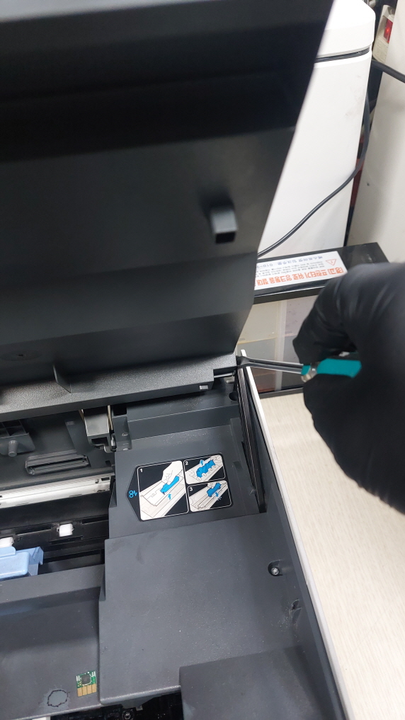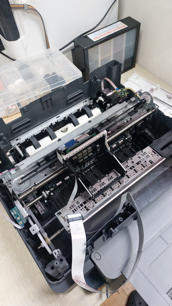 - 캐리지 걸림현상 있어서 입고 됨 ---조치--급지쪽 기어빠져서 분해후 해결함. 헤드정렬무시 -평상시 출력은 잘됨