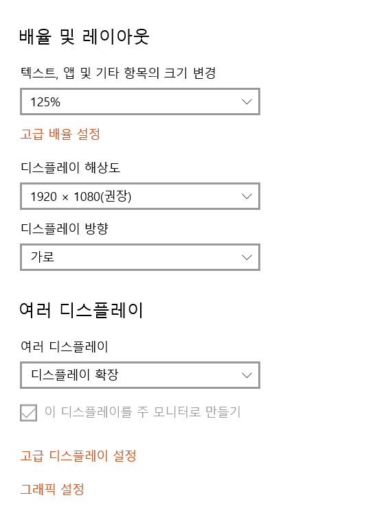 - 그리고 “외부 모니터를 기본 모니터로” 설정하면 더 편리합니다.