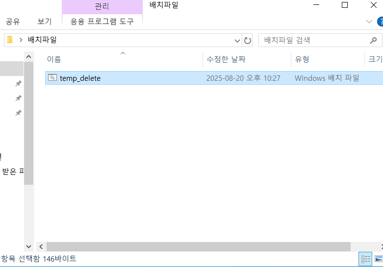 매번 직접 들어가서 지우기는 번거로운데, 배치파일 하나면 클릭 한 번으로 정리 끝!