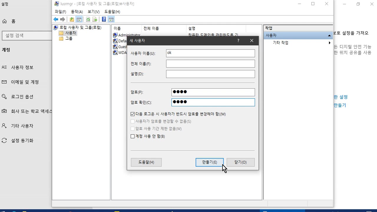 *컴퓨터사용자를 추가할 때 참고하세요.
