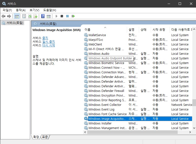 ---2. 창이 뜨면 Windows Image Acquisition 이 항목을 찾습니다.