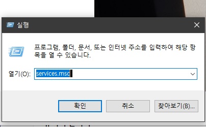 ---1. 시작을 클릭하거나 우클릭해서 검색이나 실행에서 services.msc 를 실행합니다.