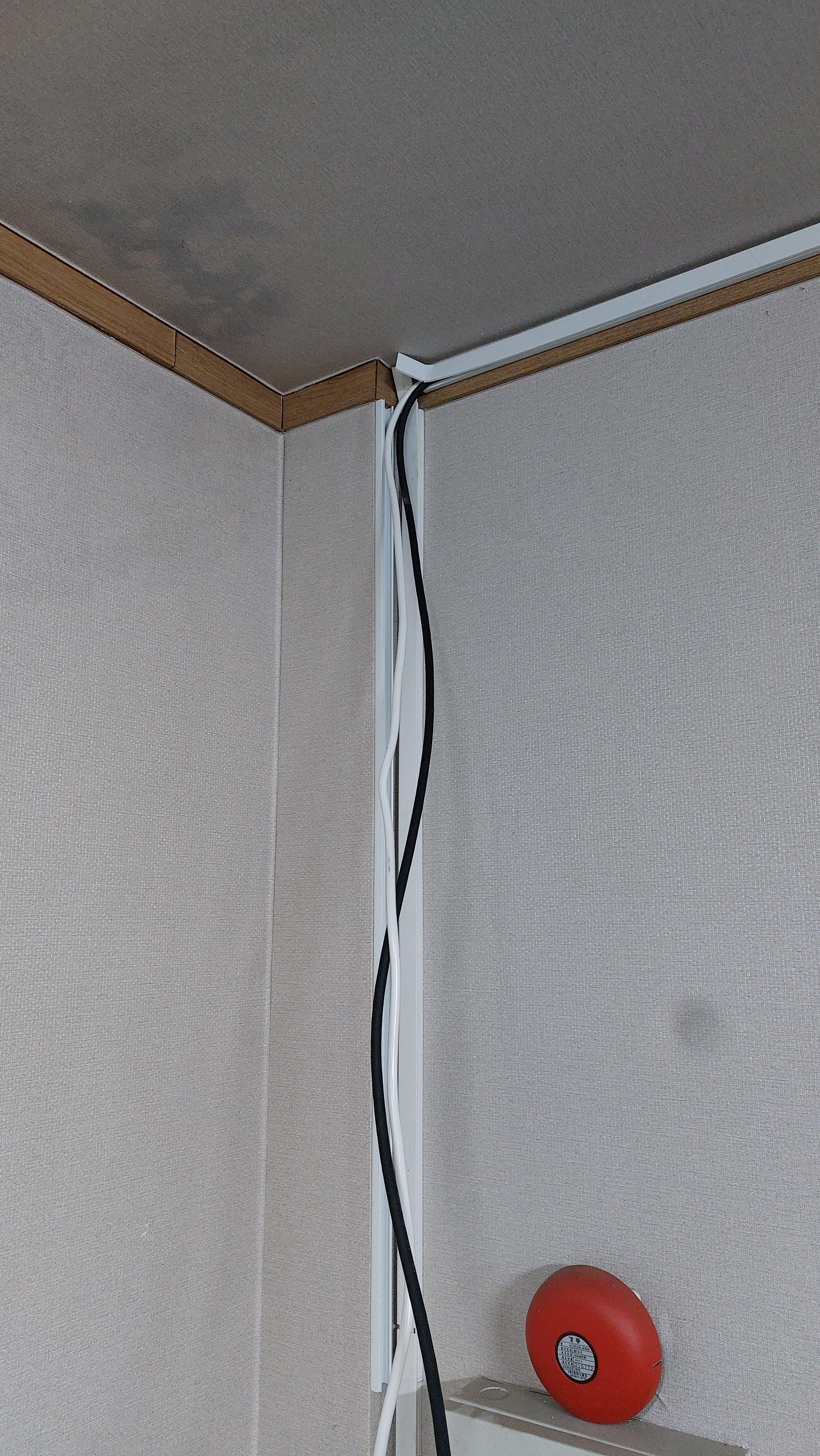 → 손으로 밀어넣고 다시 펴고 반복하면서 작업 완료 - 멀티탭 천장 고정으로 전원 간섭 없이 깔끔하게 정리