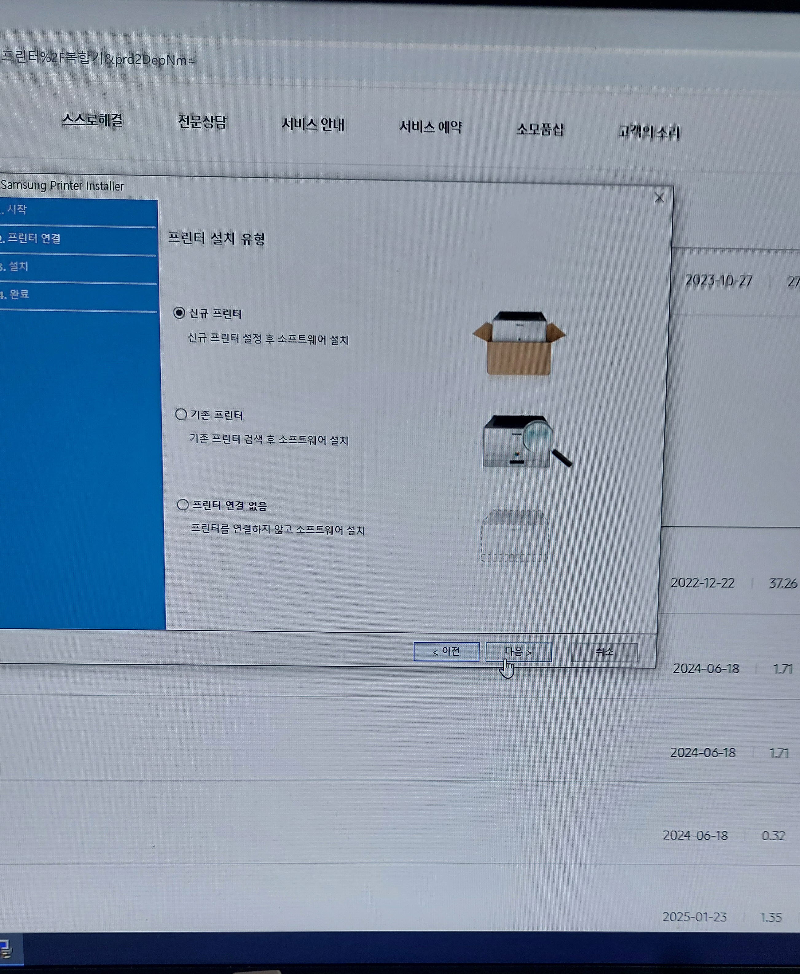 문서 백업, 프린터 연결까지 완료하고 마무리했습니다.