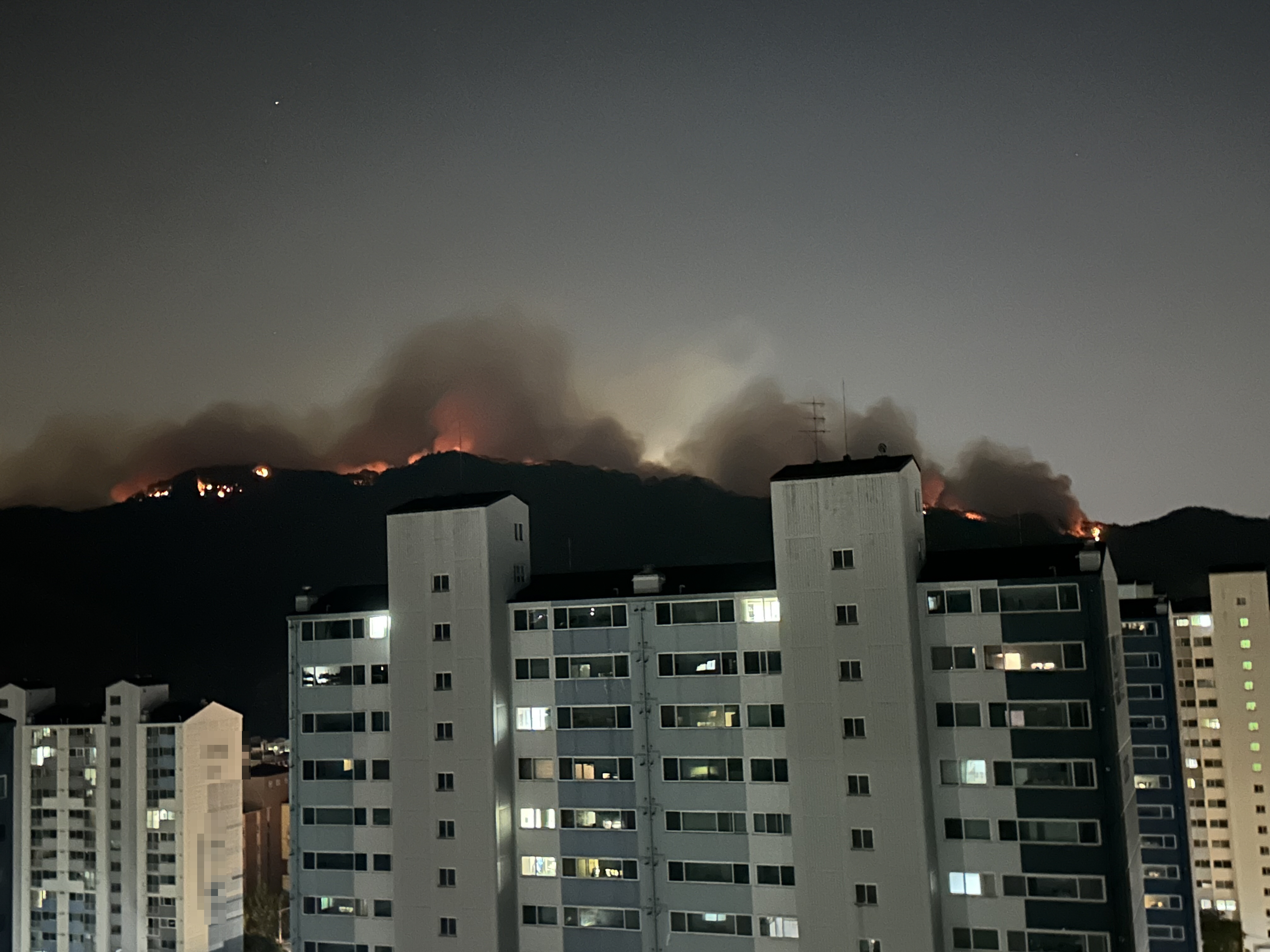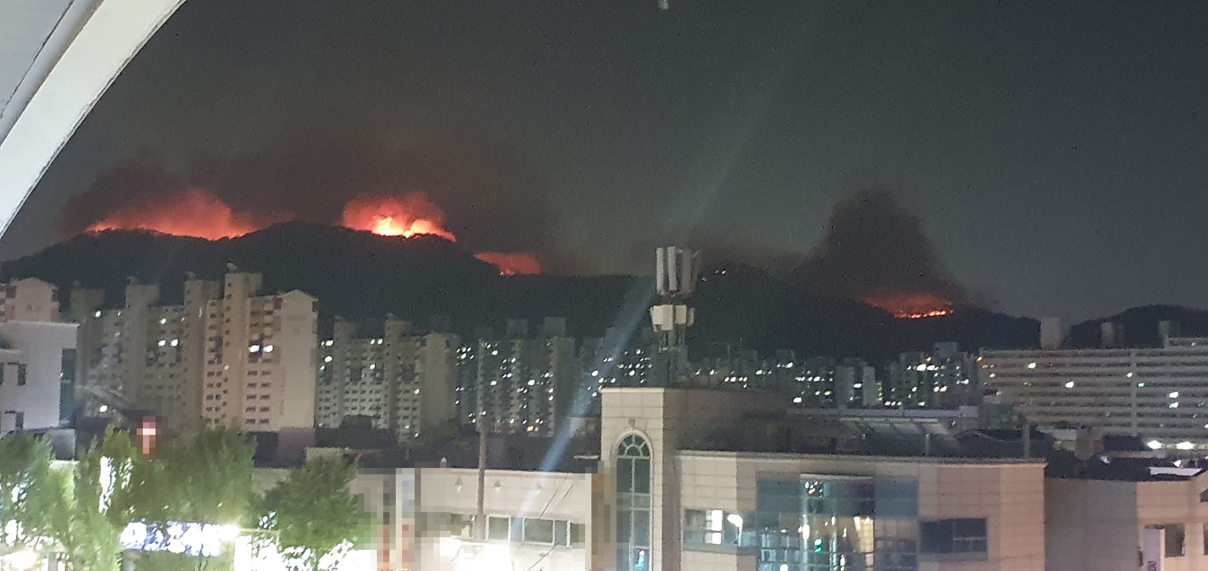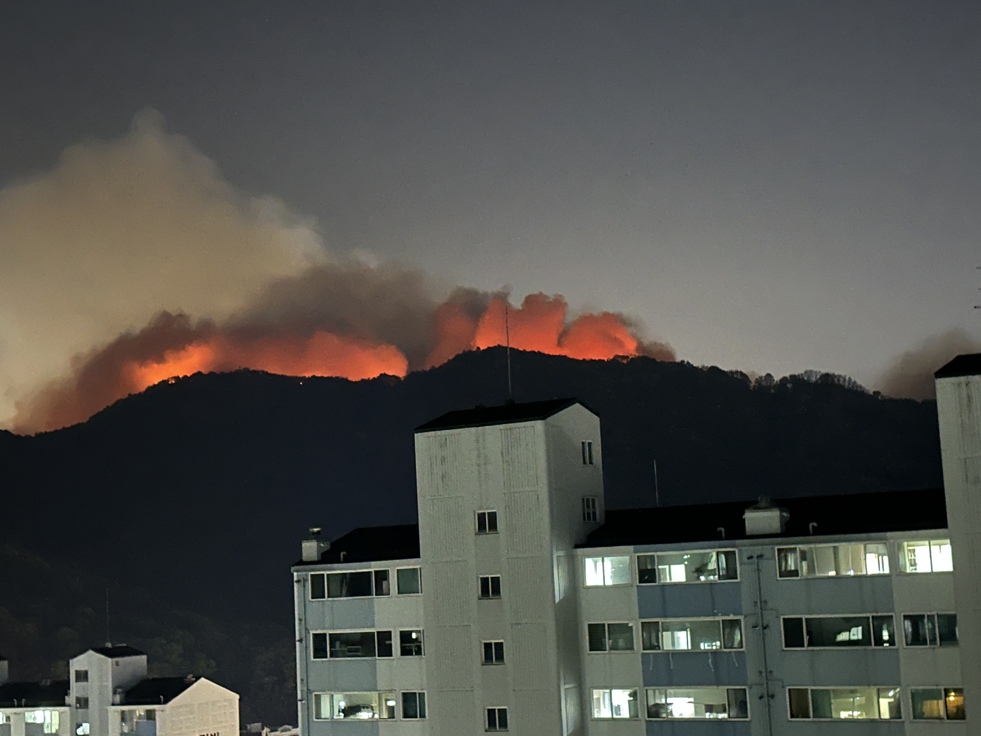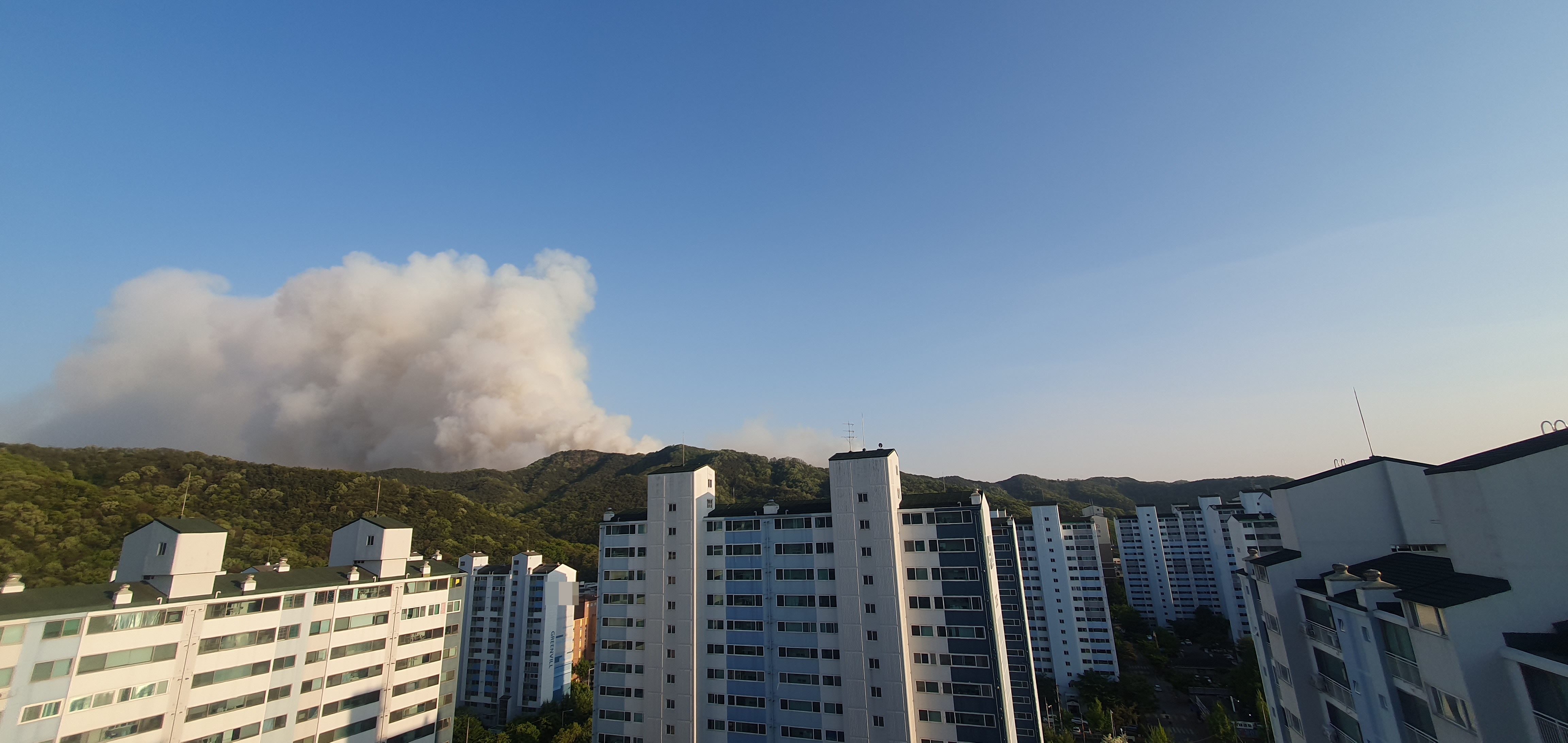 저희 동네(구암동)에서도 산불이 뚜렷하게 보일 정도로 불길이 강했고, 연기가 아파트 단지까지 밀려올 정도로 심각했습니다.
