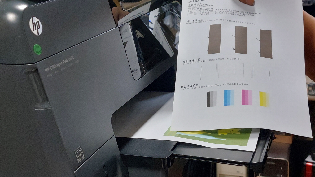 이번엔 빨강 잉크 고갈로 발생한 출력불량 문제를 직접 해결했습니다.