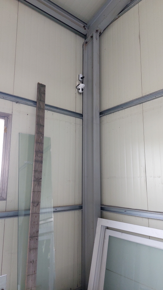 카메라의 시야 확보를 위해 공장 한쪽 코너의 철제 기둥 상단에 설치. - 브라켓 고정
