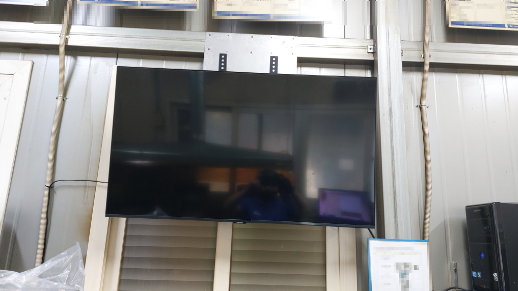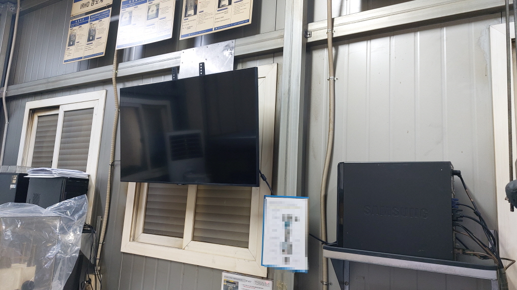 오늘은 공장 내부의 더운 작업장 한켠, 비교적 시원한 측정실에 TV를 설치했습니다.